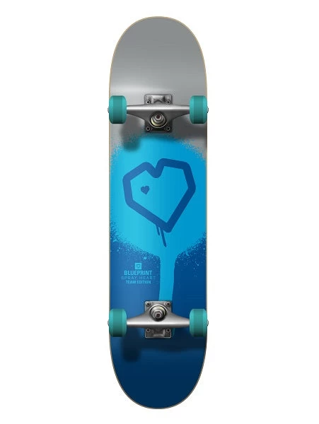 This is the Blueprint Spray Heart Silver and Blue Skateboard in 7.75″ wide. Blueprint completes offer excellent value for money as they feature proper branded trucks from Tensor. Ideal for beginners or skaters that already have some experience.