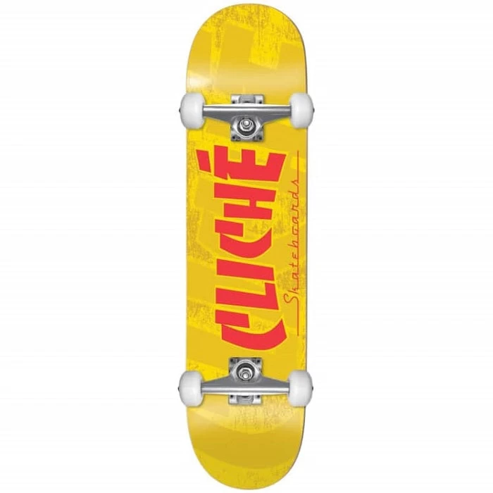 Cliche Banco Yellow Skateboard measuring 7.5″ wide, this board is ideal for starting out and great for learning with.
