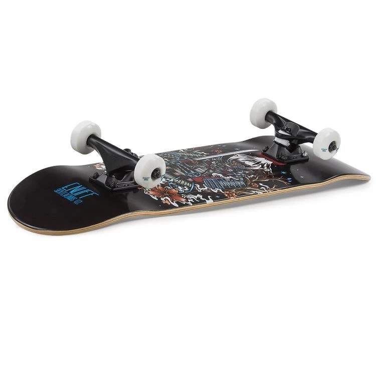 This is the Enuff Nihon Samurai Skateboard which measures 7.75 inches wide by 31.5 inches long. The base of the board features an intricate Samurai design which looks amazing on the plain black background. This is an ideal skateboard to learn the basics on but it is also good enough to keep you progressing your skills. We would recommend it for beginner to intermediate level users.