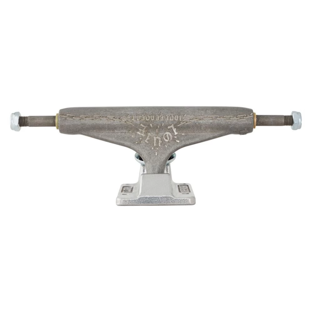 The Independent Stage 11 Louie Lopez IKP Standard Trucks is Indy’s first inverted kingpin standard height truck featuring clear trans black powder coated hanger with lazer etched Louie graphic art, polished silver baseplate, black cushions, and silver hardware