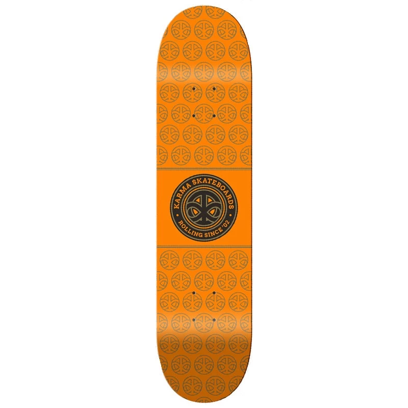 Karma Logo Seal Orange Skateboard Deck – 8.25″