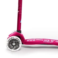The Maxi Micro Deluxe LED Scooter in Pink is the perfect step up from the Mini Micro Scooter and comes with smart LED wheels that use induction energy to turn the power kids create as they scoot into bright white light. No batteries. No fuss. Just a glow to light up the darkest evenings and brighten up the most ordinary days.