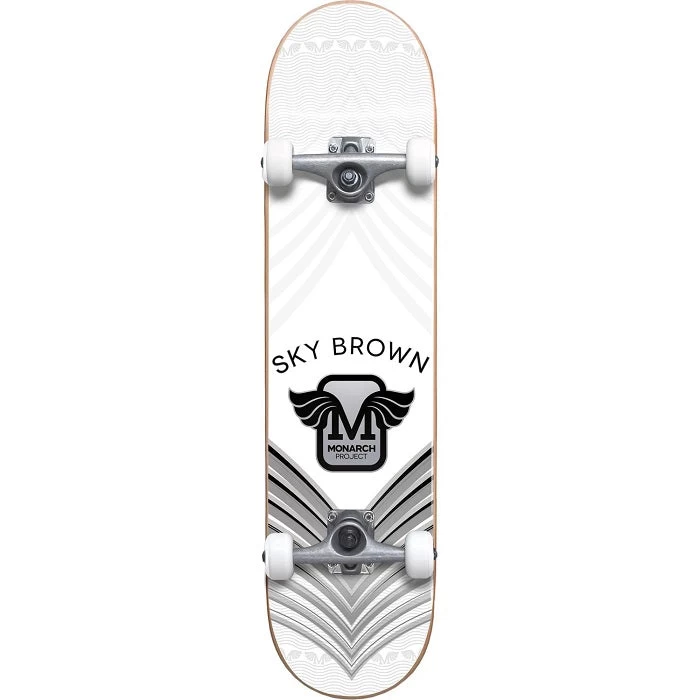 This is the Monarch Sky Horus Premium Skateboard measuring 7.75″ wide by 31.1″ long. This premium complete features Tensor Trucks and 55mm Monarch Wheels.